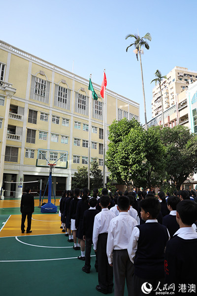 澳门培正中学举行升国旗仪式。(鲁扬摄)
