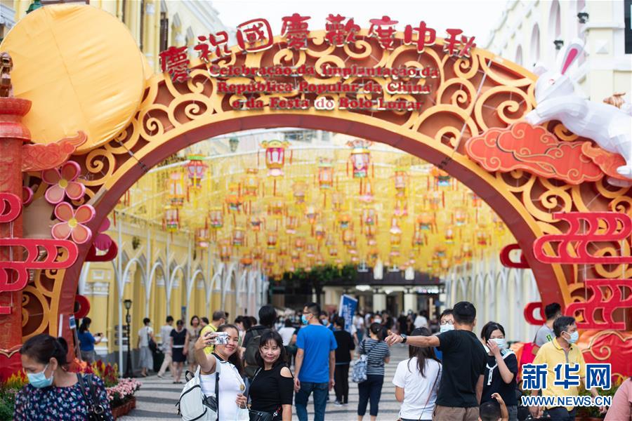 10月1日,人们在澳门议事亭前地游览。新华社记者 张金加 摄
