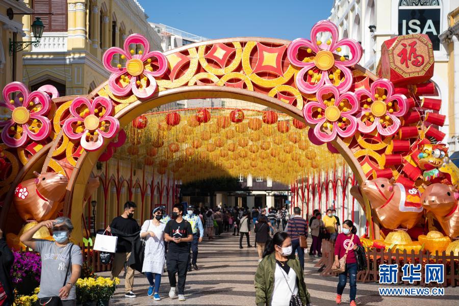 2月15日,人们在澳门议事亭前地游览。新华社记者 张金加 摄