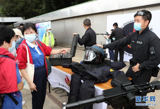 4月15日,在香港警察学院,市民在全民国家安全教育日活动上参观爆炸品处理组的展览。