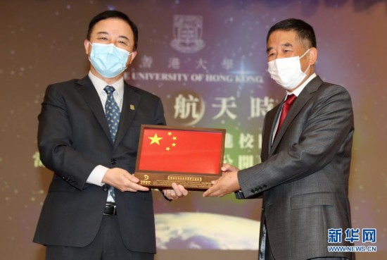 胡浩向香港大学赠送了国旗。这面国旗与嫦娥五号探测器在月球上展示的一模一样。
