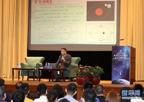 6月23日,中国探月工程三期总设计师胡浩在香港大学作报告。新华社记者 李钢 摄