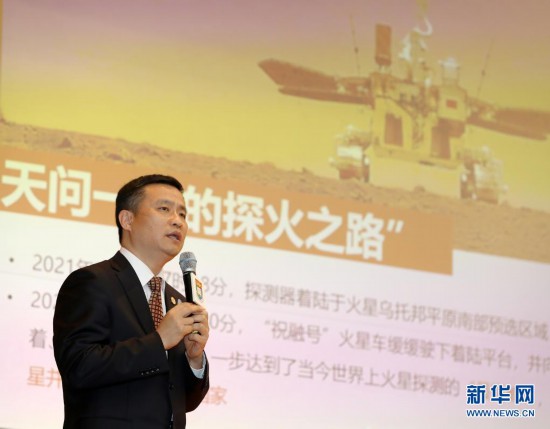 6月24日,天问一号火星探测器总设计师孙泽洲在香港大学作报告。新华社记者 李钢 摄