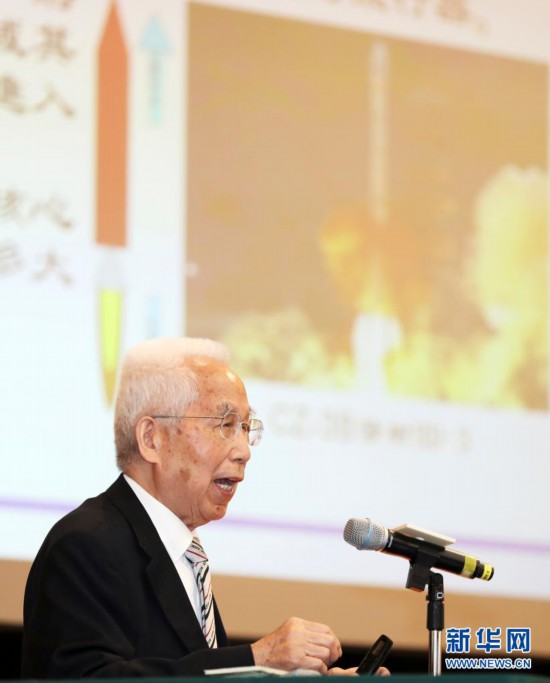 6月24日,中国工程院院士、长征系列火箭总设计师龙乐豪在香港大学作报告。新华社记者 李钢 摄