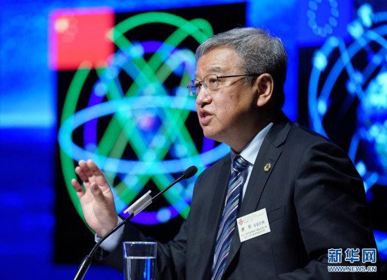 6月24日,在香港理工大学,北斗三号卫星首席总设计师谢军在台上作报告。新华社记者 王申 摄