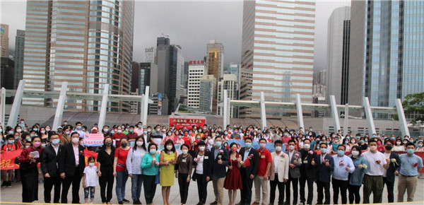 香港各界爱国爱港人士在“庆七一快闪交响乐”活动现场。主办方供图