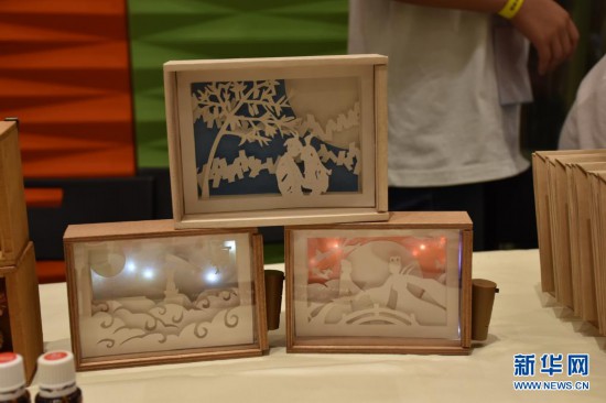 由博爱医院八十周年邓英喜中学的学生制作的牛郎织女剪纸 (8月14日摄)。新华社记者 陈珮盈 摄