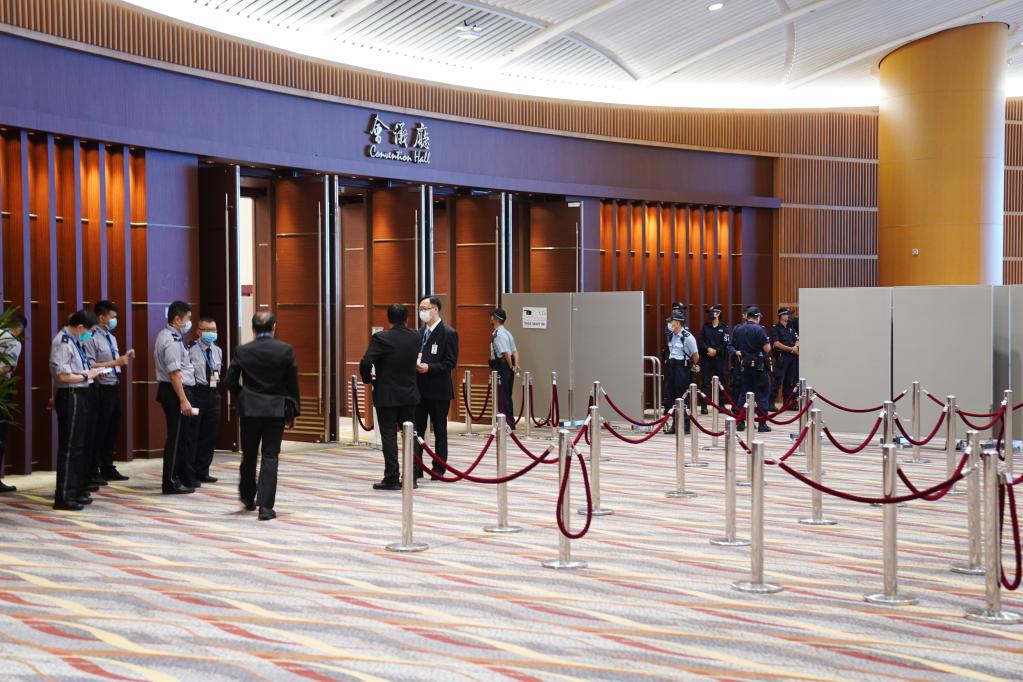 9月19日拍摄的投票前的香港会展中心投票站。新华社记者 王申 摄