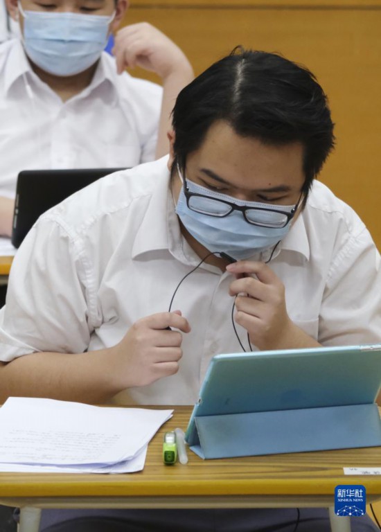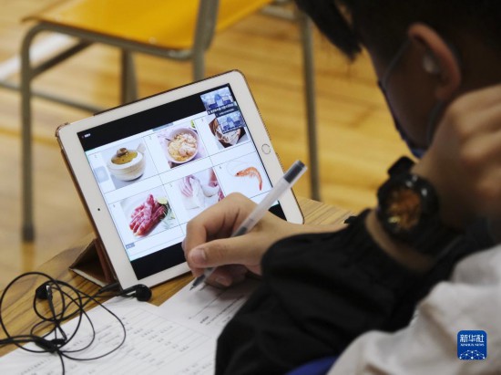 11月10日,在香港扶幼会则仁中心学校,香港中学生参加网络直播课。新华社记者 王申 摄