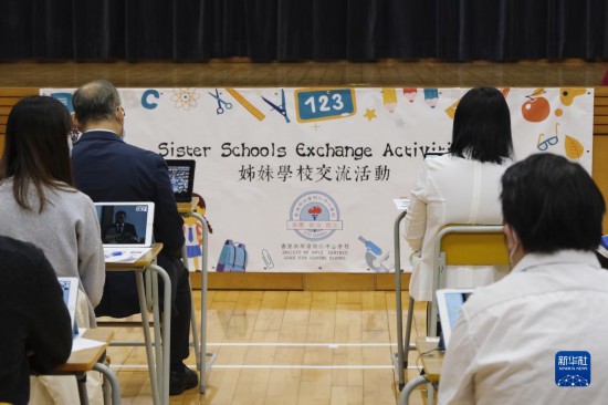 11月10日,香港扶幼会则仁中心学校的师生和姊妹学校深圳市坪山区光祖中学的师生一起通过网络上课。新华社记者 王申 摄