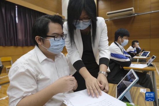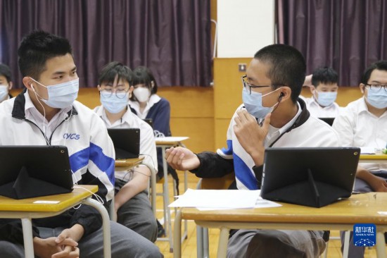 11月10日,在香港扶幼会则仁中心学校,香港中学生在网络直播课上回答姊妹学校深圳市坪山区光祖中学老师提出的问题。新华社记者 王申 摄
