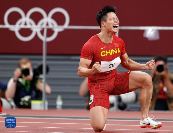 2021年8月1日,苏炳添在东京奥运会田径男子100米半决赛后庆祝。新华社记者 王丽莉 摄