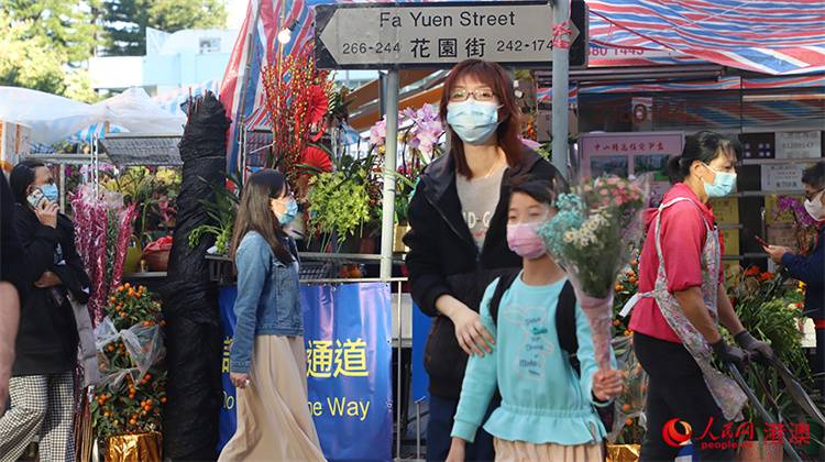 每逢春节,香港会举办俗称“花市”的年宵市场。今年因为疫情,香港特区政府宣布取消年宵花市,不少市民便前往旺角花墟购置年花,花店商铺也在大街小巷开设售卖年花的专区,寓意心想事成的蝴蝶兰、祝福大展宏图的桃花、祈福子孙满堂的“五代同堂”……各类鲜花盆景琳琅满目。