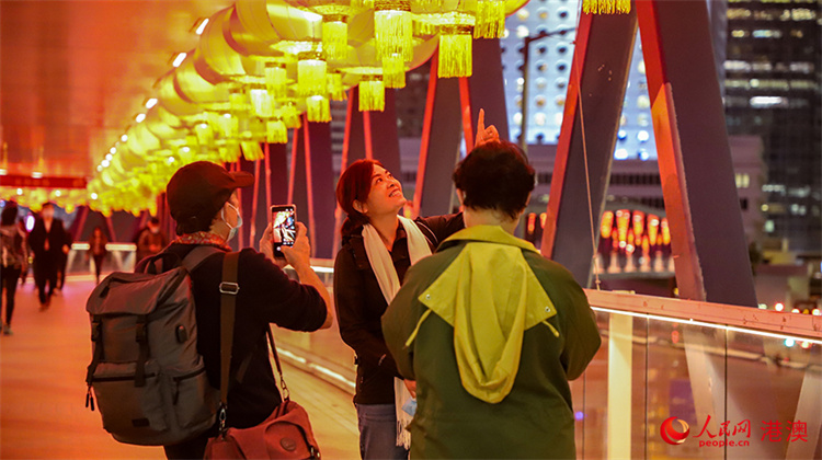 尖沙咀、中环IFC、湾仔利东街等香港地标挂上了大红灯笼,满街的新春装饰别具一格、尽显喜庆,吸引不少市民驻足拍照,笑脸盈盈。
