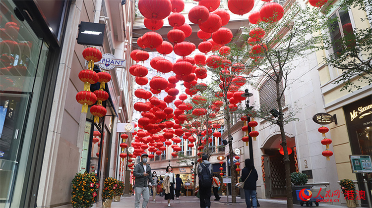 香港中环石板街新春气息浓厚。人民网 吴宇扬扬摄