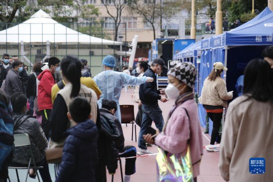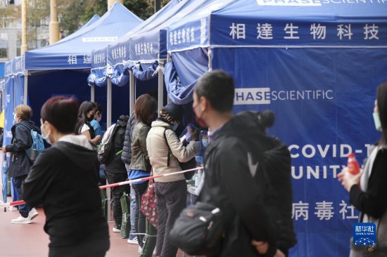 2月8日,香港市民在排队做核酸检测。新华社记者 王申 摄