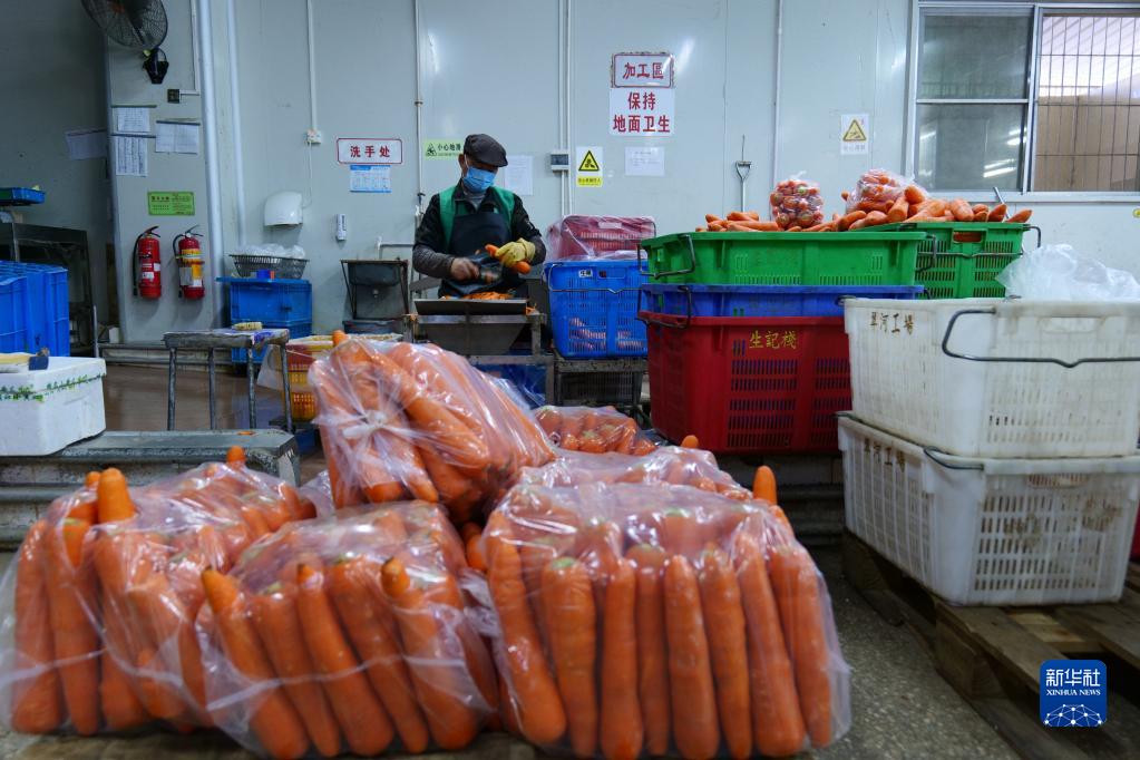 2月11日,深圳生记栈农产品有限公司员工打包供港蔬菜。新华社记者 王丰 摄