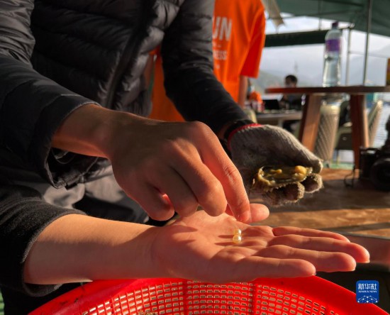 在传统的鱼类养殖之外,梁锦明独辟蹊径,开始在香港渔业提升基金的资助下养殖珍珠。“香港是东方之珠,但养殖珍珠的人却很少。我养的是马氏珍珠贝,我们自己插核,一年左右就可以开珍珠。”