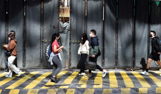 3月1日,在香港中环,市民佩戴口罩出行。新华社记者 卢炳辉 摄
