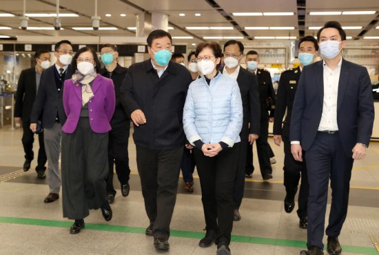 2月28日,香港特区行政长官林郑月娥等赴口岸迎接专家组一行。新华社记者 李钢 摄