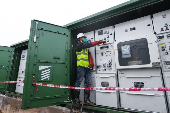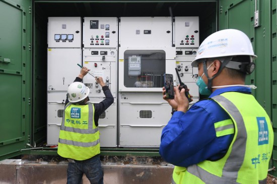 下午5时30分,随着合闸开关“咚”地一响,电压指示表的表针稳稳指向11千伏,红色的合闸指示灯亮起,中央援港应急医院项目一期进入联调联试阶段。