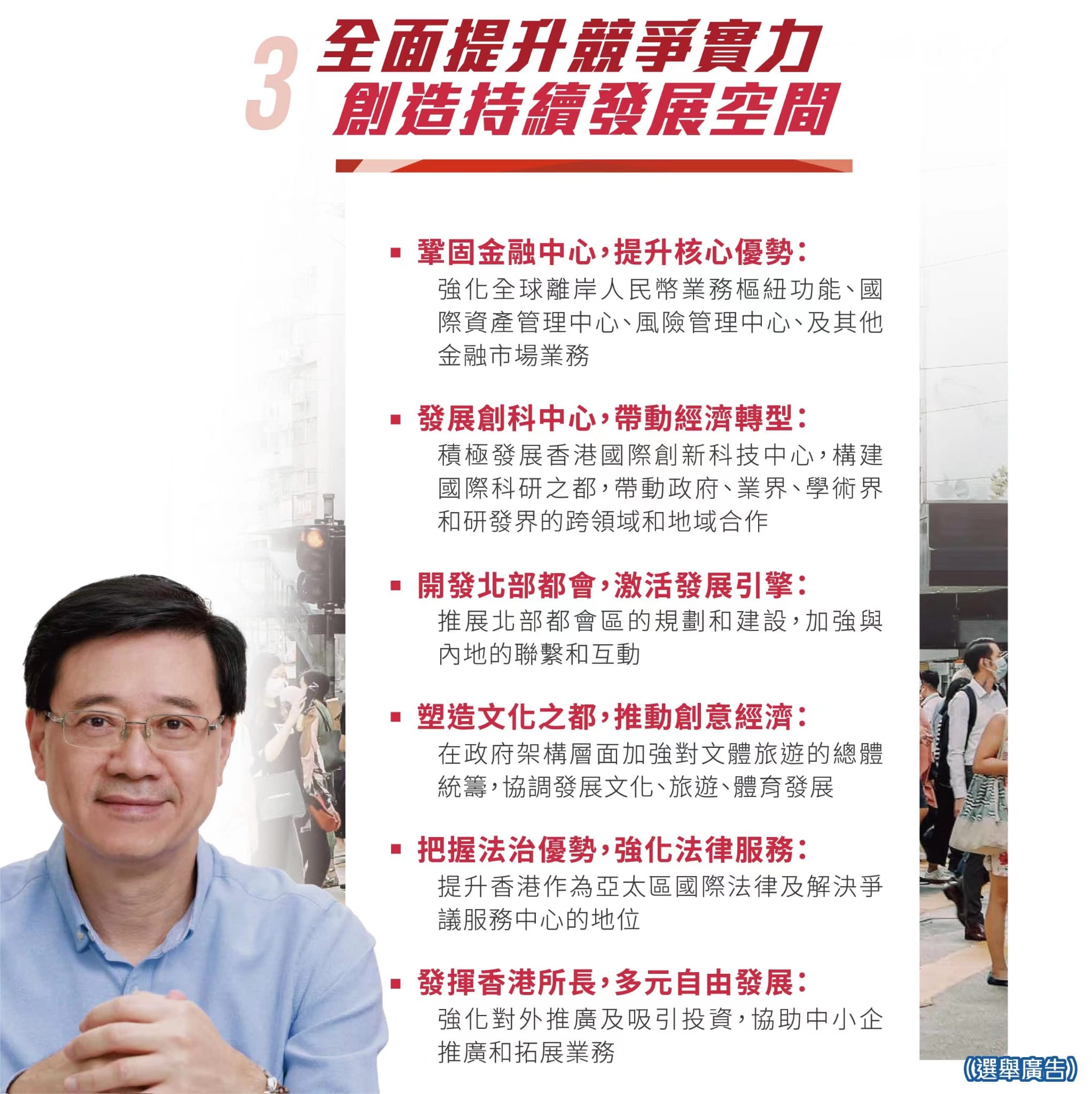 香港行政长官候选人李家超公布政纲。图片来源:李家超竞选网站