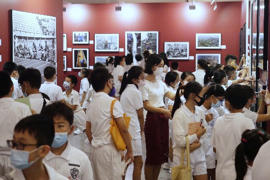 2021年10月11日,香港小学生在参观《国家相册》大型图片典藏展。新华社记者 王申 摄
