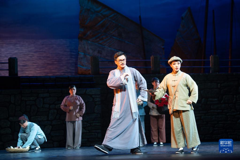 6月9日,演员在现代粤剧《南粤破晓》上。新华社记者 张金加 摄