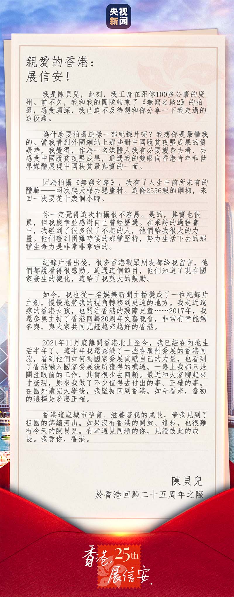 她看到香港同胞如何为祖国发展贡献自己的力量