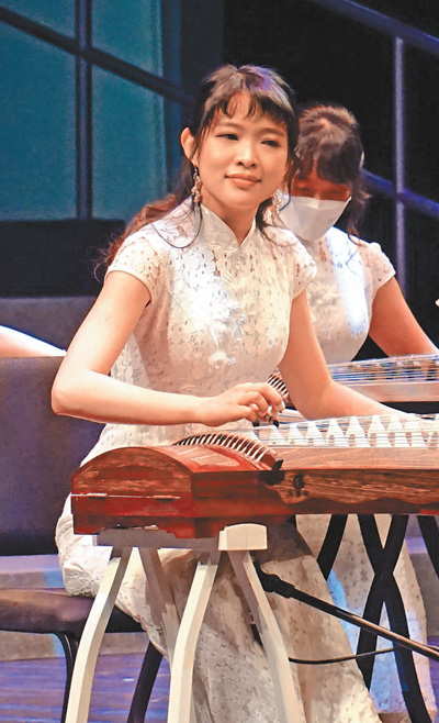 全港同乡社团庆祝香港回归祖国25周年文艺巡演启动礼上,表演者在演奏古筝。本报记者 裴苒迪摄