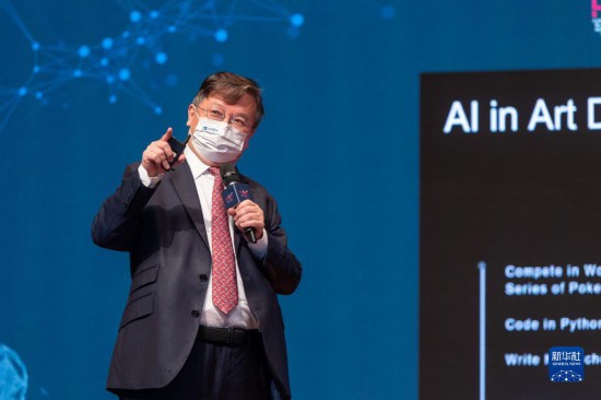 8月9日,研讨会组委会主席、浸大副校长郭毅可在会上发言。新华社发
