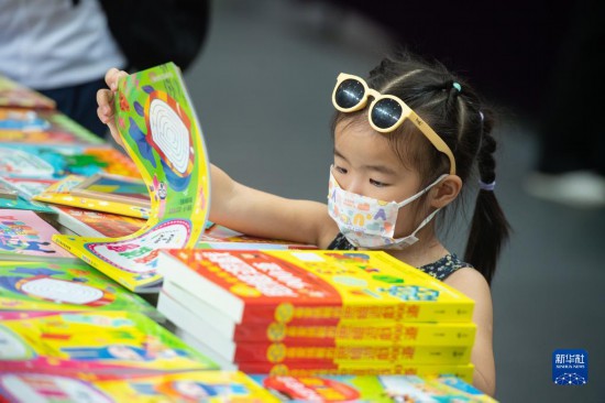 8月28日,小朋友在第二十五届澳门书市嘉年华上选购图书。