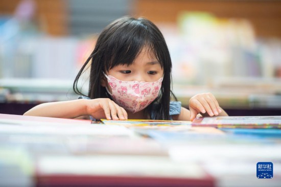 8月28日,小朋友在第二十五届澳门书市嘉年华上选购图书。
