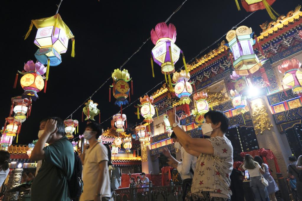 新华社香港9月10日电(记者张雅诗、许淑敏)10日是中秋节,香港各处张灯结彩,街头充满欢声笑语,洋溢着节日气氛。
