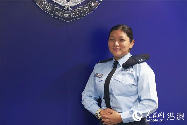 香港新界北冲锋队警员梁慧玲。人民网 吴宇扬扬摄
