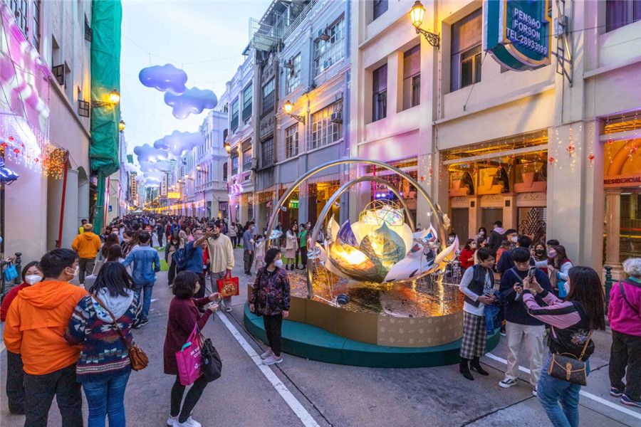 澳门新马路首次变身步行街 成春节热门景点