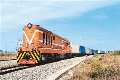 满载着广东优质商品的中欧班列驶向哈萨克斯坦阿拉木图。韩 逸摄