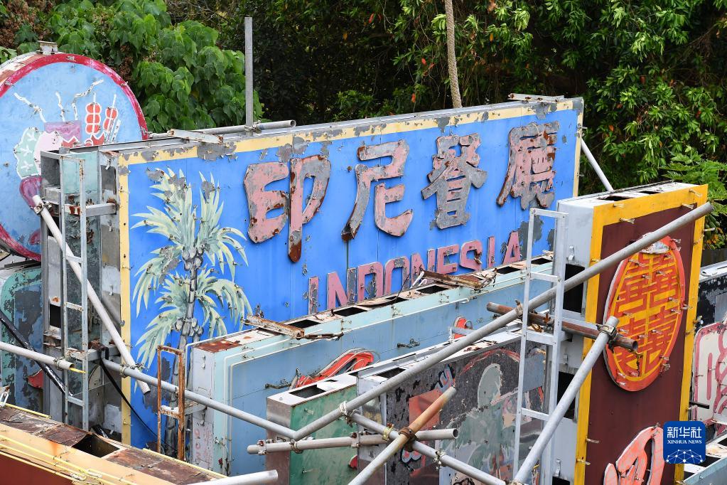 “印尼餐厅”是陈倩文收藏的第一块霓虹招牌。印尼餐厅1970年开业,2019年终止营业。“学生时代我经常路过这家餐厅,听说他们要荣休,我第一时间就冲了过去。”陈倩文说,几经沟通,她终于把这块招牌保育起来。