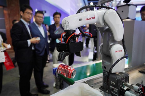 4月12日在首届香港国际创科展上拍摄的进行垃圾分类的机器臂。新华社记者 吕小炜 摄