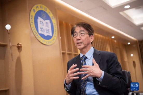 5月24日,澳门科技大学校长李行伟接受采访。新华社记者 张金加 摄