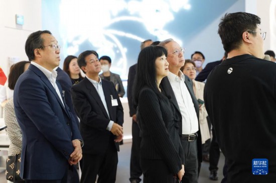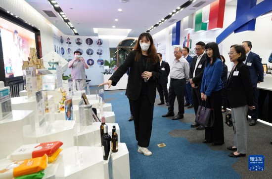 5月22日,考察团在珠海市中交汇通横琴广场参观。新华社发