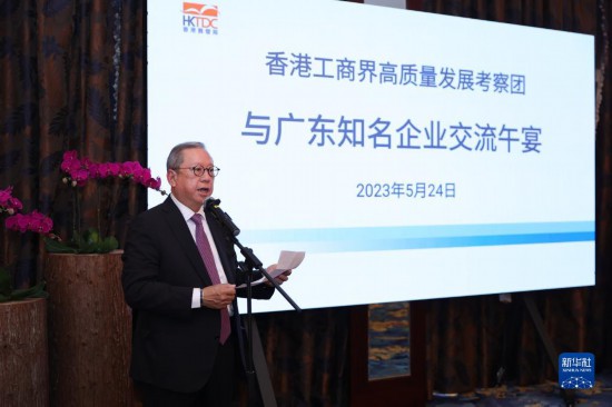 5月24日,香港贸易发展局主席林建岳在广州市参加交流午宴时发言。新华社发
