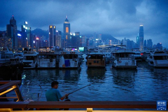 9月2日傍晚,一名市民在香港东岸公园主题区附近钓鱼。新华社记者 朱炜 摄
