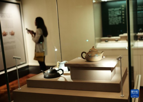 在香港茶具文物馆“文人文玩——中国文人用具与茶生活”展览上展出的茶壶(8月8日摄)。新华社记者 李钢 摄