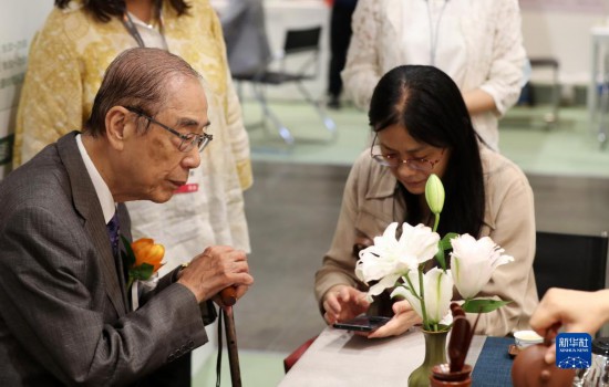 香港中国茶文化国际交流协会会长杨孙西(左)接受新华社记者采访(8月17日摄)。新华社记者 李钢 摄