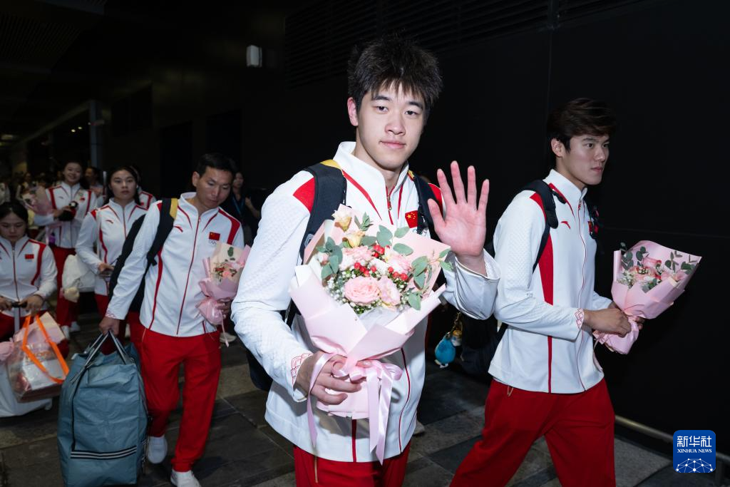 8月31日,游泳运动员潘展乐(前)在欢迎仪式上。新华社记者 张金加 摄
