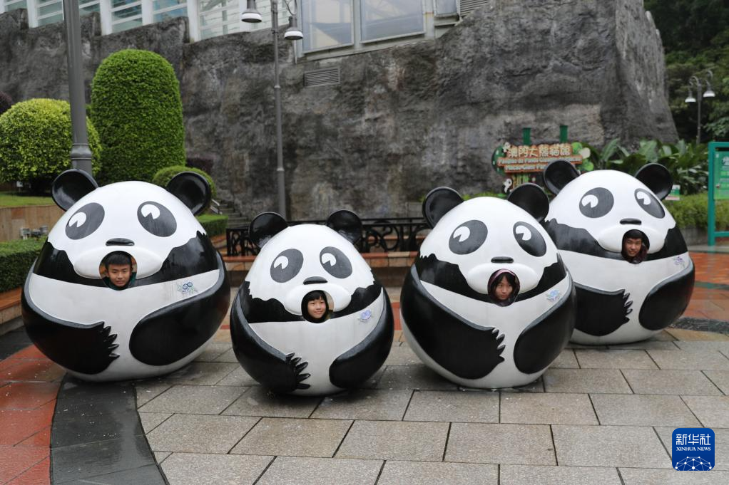 在澳门路环石排湾郊野公园大熊猫馆,中央赠送澳门的大熊猫“开开”“心心”和它们的双胞胎儿子“健健”“康康”过着闲适快乐的生活,它们时而食用竹子,时而与游客“打招呼”,憨态可掬的样子吸引了游客的目光。
