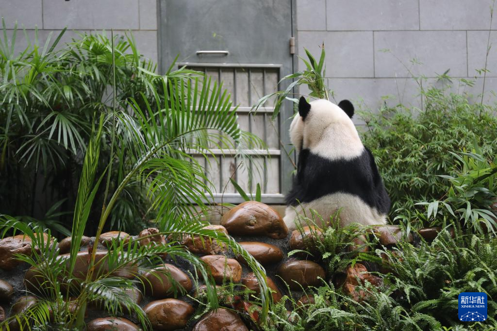 在澳门路环石排湾郊野公园大熊猫馆,中央赠送澳门的大熊猫“开开”“心心”和它们的双胞胎儿子“健健”“康康”过着闲适快乐的生活,它们时而食用竹子,时而与游客“打招呼”,憨态可掬的样子吸引了游客的目光。