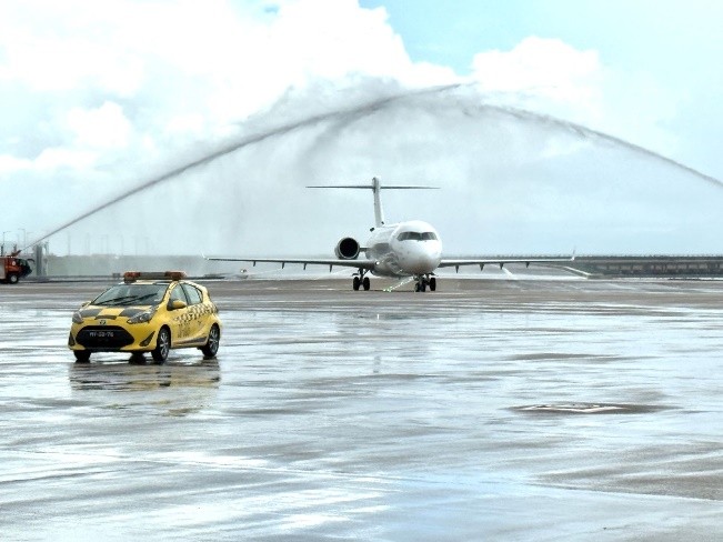 图为澳门与南昌航线首度由国产C909客机执飞。澳门国际机场专营股份有限公司供图
